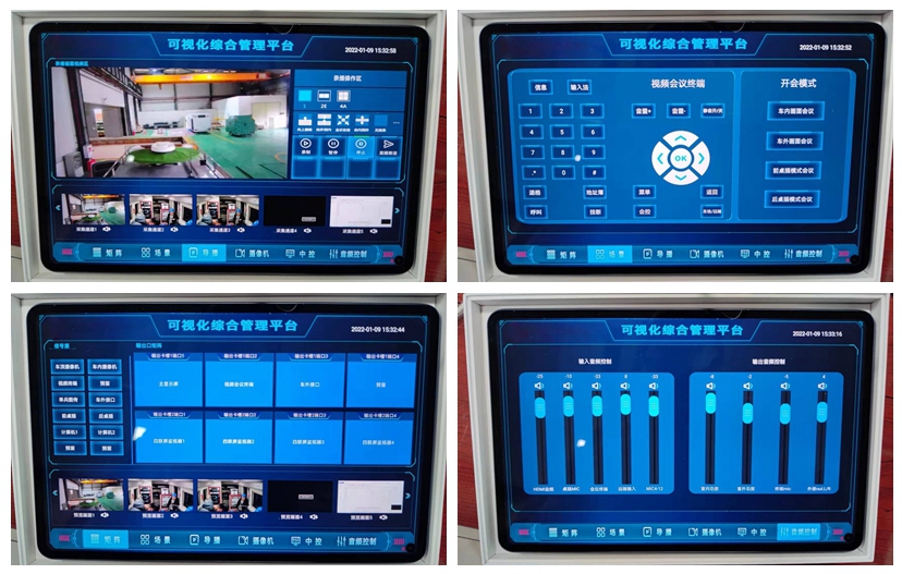 项目采用4台milan.com米兰科技UT2主机+4台IMC3.0,保证现场音视频指挥调度、画面切换、统一控制管理等应用。UT2具备六大功能合一:集成音频处理器、视频无缝混矩、可编程中控、录播编解码、视频会议终端、多方视频会议六大模块,产品具有安装简便,操作简单、维护容易等优点;控制界面采用可视化综合管理平台IMC3.0,实现统一管控、音视频调度等应用。